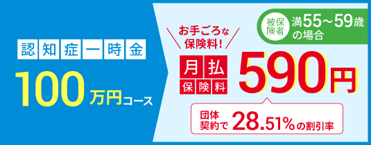 保険料新規・継続でご加入できるコース 0~17歳 80円 70円 60円 50円 - - - 18~39歳 80円 70円 60円 50円 800円 400円 - 40~44歳 130円 90円 80円 60円 800円 400円 - 45~49歳 250円 170円 130円 90円 800円 400円 - 50~54歳 450円 290円 210円 130円 800円 400円 - 55~59歳 900円 560円 390円 220円 1,170円 590円 - 60~64歳 1,750円 1,070円 730円 390円 1,620円 810円 - 65~69歳 2,960円 1,800円 1,210円 630円 2,610円 1,310円 - 70~74歳 6,240円 3,760円 2,520円 1,280円 5,290円 2,650円 - 75~79歳 13,050円 7,850円 5,250円 2,650円 10,410円 5,210円 - 継続のみ 80~84歳 - 15,750円 10,510円 5,280円 - - 4,820円 85~89歳 - 29,360円 19,590円 9,820円 - - 8,230円 介護一時金500万円コース被保険者満年齢 月払保険料 新規・継続でご加入できるコース 0~17歳 80円 18~39歳 80円 40~44歳 130円 45~49歳 250円 50~54歳 450円 55~59歳 900円 60~64歳 1,750円 65~69歳 2,960円 70~74歳 6,240円 75~79歳 13,050円 継続のみ 80~84歳 - 85~89歳 - 介護一時金300万円コース被保険者満年齢 月払保険料 新規・継続でご加入できるコース 0~17歳 70円 18~39歳 70円 40~44歳 90円 45~49歳 170円 50~54歳 290円 55~59歳 560円 60~64歳 1,070円 65~69歳 1,800円 70~74歳 3,760円 75~79歳 7,850円 継続のみ 80~84歳 15,750円 85~89歳 29,360円 介護一時金200万円コース被保険者満年齢 月払保険料 新規・継続でご加入できるコース 0~17歳 60円 18~39歳 60円 40~44歳 80円 45~49歳 130円 50~54歳 210円 55~59歳 390円 60~64歳 730円 65~69歳 1,210円 70~74歳 2,520円 75~79歳 5,250円 継続のみ 80~84歳 10,510円 85~89歳 19,590円 介護一時金100万円コース被保険者満年齢 月払保険料 新規・継続でご加入できるコース 0~17歳 50円 18~39歳 50円 40~44歳 60円 45~49歳 90円 50~54歳 130円 55~59歳 220円 60~64歳 390円 65~69歳 630円 70~74歳 1,280円 75~79歳 2,650円 継続のみ 80~84歳 5,280円 85~89歳 9,820円 認知症一時金200万円コース被保険者満年齢 月払保険料 新規・継続でご加入できるコース 0~17歳 - 18~39歳 800円 40~44歳 800円 45~49歳 800円 50~54歳 800円 55~59歳 1,170円 60~64歳 1,620円 65~69歳 2,610円 70~74歳 5,290円 75~79歳 10,410円 継続のみ 80~84歳 - 85~89歳 - 認知症一時金100万円コース被保険者満年齢 月払保険料 新規・継続でご加入できるコース 0~17歳 - 18~39歳 400円 40~44歳 400円 45~49歳 400円 50~54歳 400円 55~59歳 590円 60~64歳 810円 65~69歳 1,310円 70~74歳 2,650円 75~79歳 5,210円 継続のみ 80~84歳 - 85~89歳 - 認知症一時金50万円コース被保険者満年齢 月払保険料 新規・継続でご加入できるコース 0~17歳 - 18~39歳 - 40~44歳 - 45~49歳 - 50~54歳 - 55~59歳 - 60~64歳 - 65~69歳 - 70~74歳 - 75~79歳 - 継続のみ 80~84歳 4,820円 85~89歳 8,230円