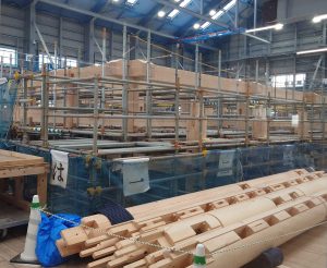 正殿前の広場?に再建用の建物があり、その中で組み立てがされておりました。